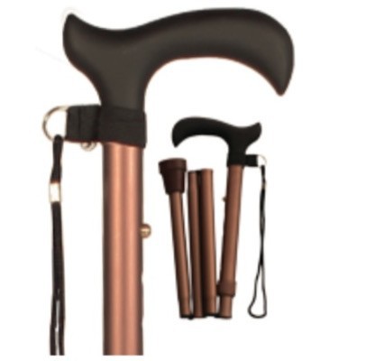 Baston pliabil in 4 segmente, realizat din duraluminiu anodizat, maner ergonomic, model Derby realizat din polipropilena acoperita cu un strat pentru aderenta si o atingere placuta. Bastonul se utilizeaza cu oricare dintre maini, la partea inferioara are un stoper din cauciuc sintetic, rezistent la uzura, pentru aderenta la pardoseala in timpul deplasarii.