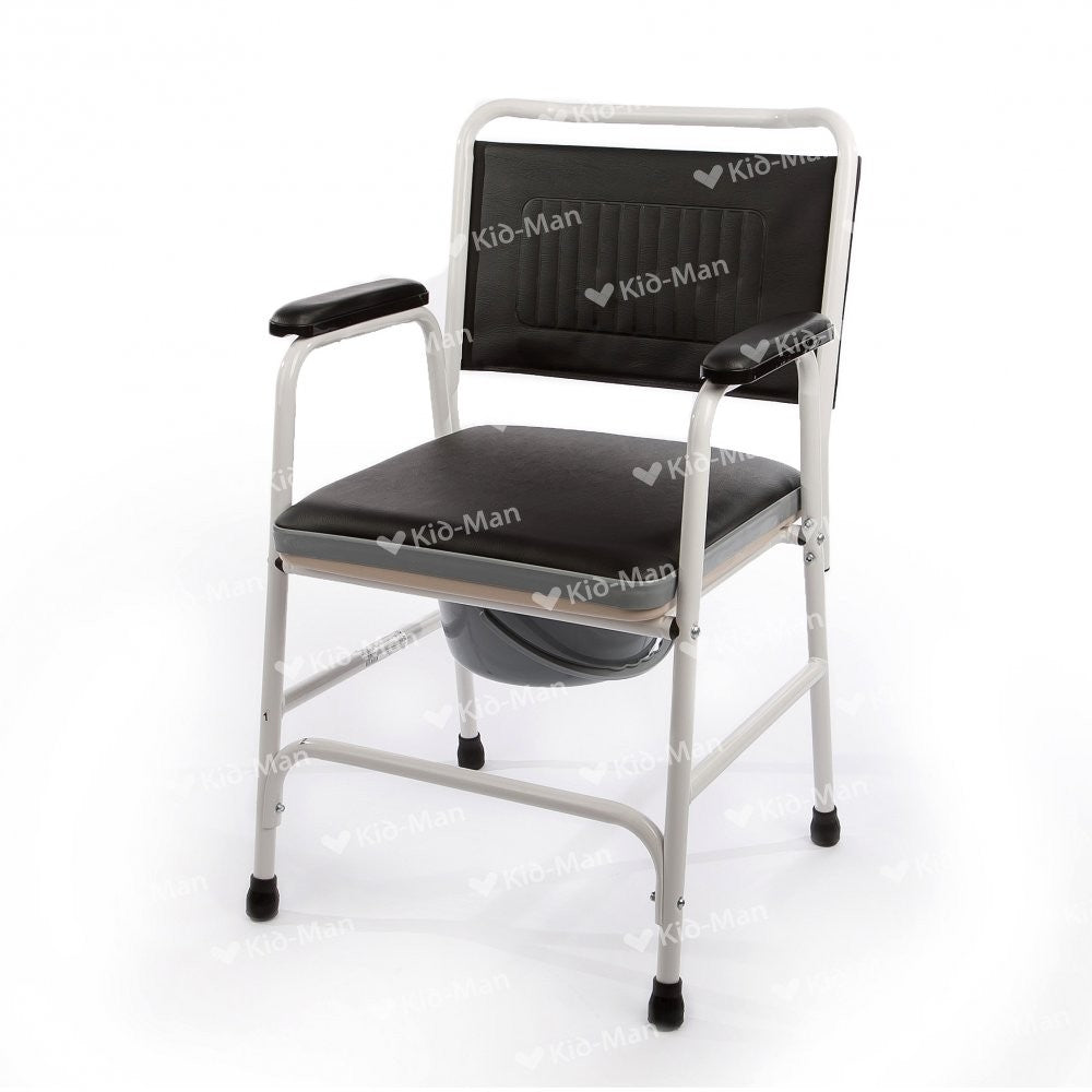 Comoda WC de interior, structura de rezistenta a comodei este realizata din otel. Are scaun din plastic cu orificiu oval in mijloc care este acoperit cu capac captusit cu piele sintetica.