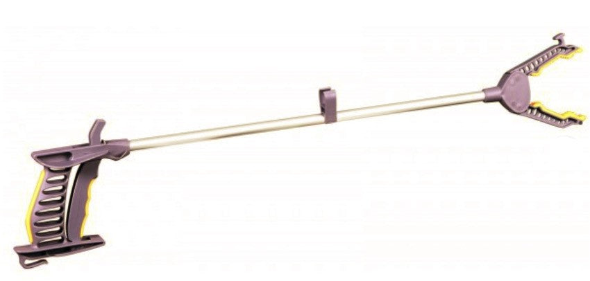 Dispozitiv de apucare la distanta, are doua falci sub forma de cleste, cand se actioneaza mecanismul tip tragaci se strang apucand la o distanta de max 1, 3 - 1, 4 m diverse obiecte usoare, un prosop, o carte, o cana. Lungimea dispozitivului este de 75 cm.