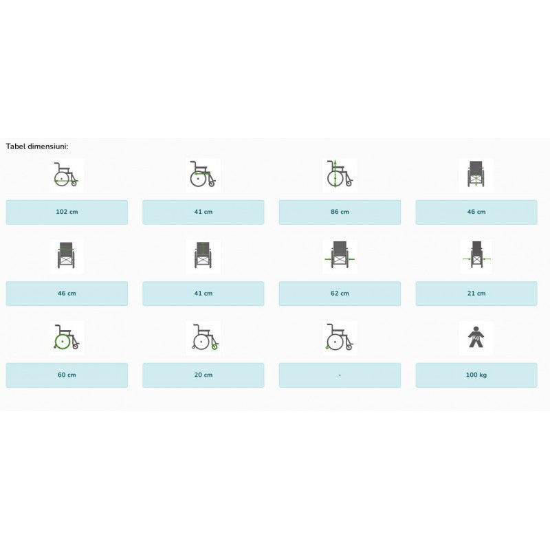 Transportul persoanelor cu dizabilitati devine o plimbare lina, in deplina siguranta, pentru ca durabilitatea este conferita de cadrul din otel vopsit in negru.