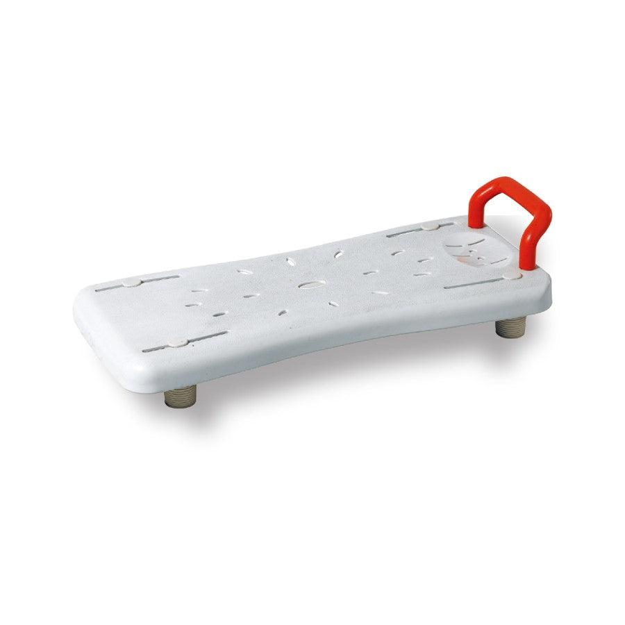 Plansa de sustinere pe cada de baie - utilizata pentru igiena corporala a persoanelor cu mobilitate redusa, probleme de echilibru, atrifie musculara. Plansa pentru cada de baie se fixeaza cu 4 tampoane cu cauciuc pe margine, se deplaseaza tampoanele catre peretii interiori ai cazii de baie si se insurubeaza.