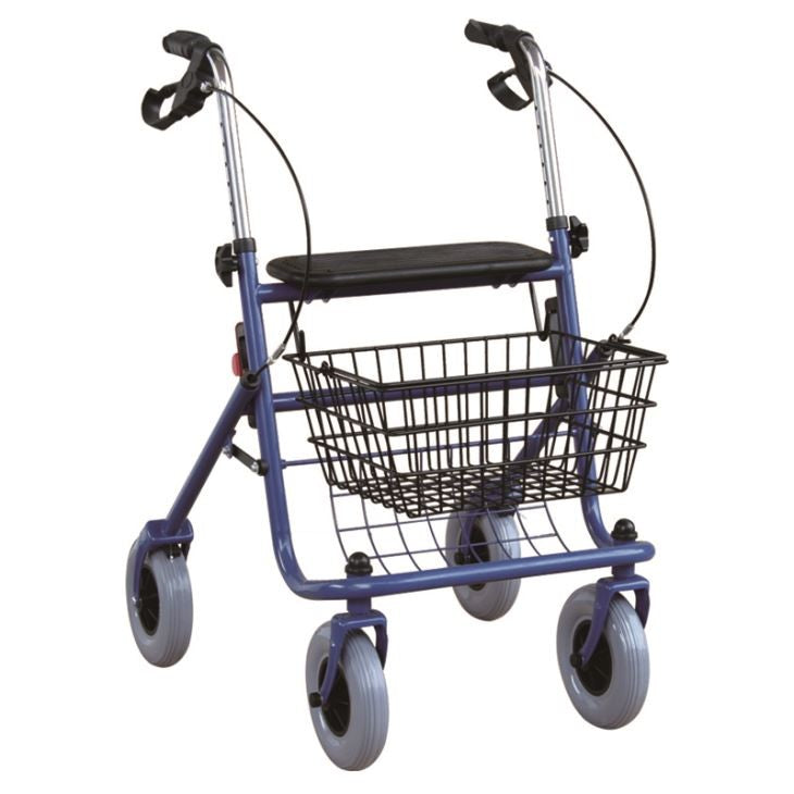 Rolator ortopedic cu 4 roti, realizat din otel, vopsit cu pulberi epoxy. Rolatorul ortopedic se poate plia pentru reducerea spatiului de transport sau depozitare.