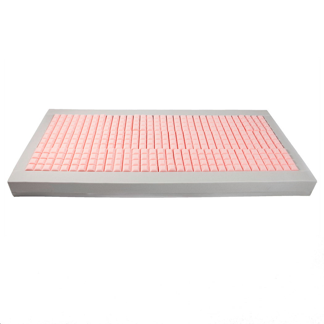 Modelul de saltea antidecubit (antiescare) prezentat este prevazut cu o husa din tesatura medicala speciala. Aceasta este igienica, impermeabila si permite tesutului sa respire.