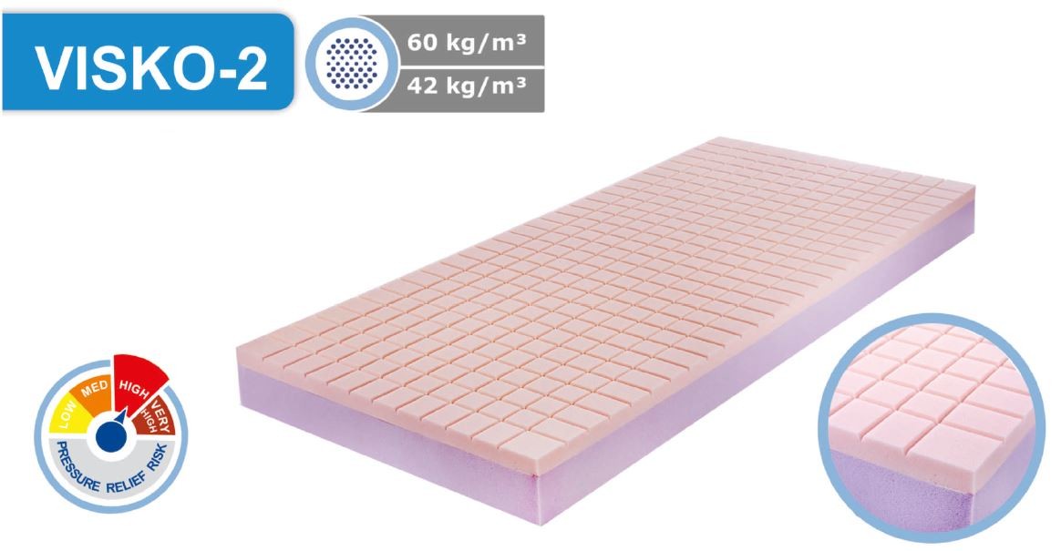 Salteaua antiescare model VISKO-2 este destinata utilizarii de catre pacientii cu risc mediu si mare de dezvoltare a escarelor. Structura saltelei antiescare este formata din doua straturi de spuma.