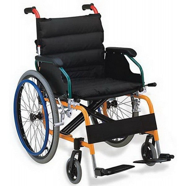 Scaun rulant cu actionare manuala, si varianta pentru copii- schelet aluminiu vopsit epoxi, roti fata 6' cauciuc plin, reglabile ca inaltime si diatanta fata de roata spate, rezistente la socuri, roti spate 20' cu spite, cauciucuri pline, suport brate detasabil pentru plasarea pacientului. Este un fotoliu rulant de structura de aluminiu ii confera o greutate redusa si aspect deosebit.