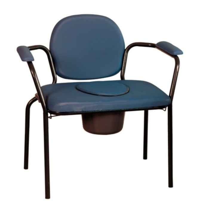 Scaun comoda WC de camera destinat persoanelor supraponderale care nu se pot deplasa la o camera de baie. Structura de rezistenta realizata din otel protejat prin vopsire in pulberi epoxy.