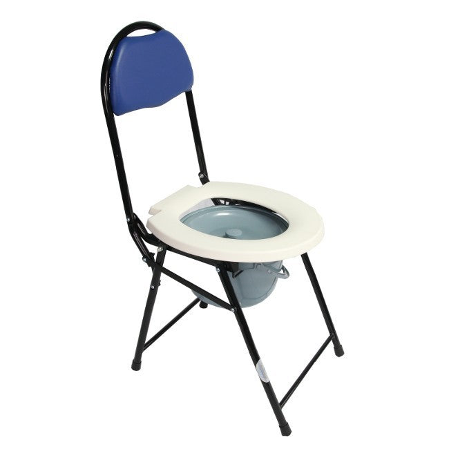 Comoda WC cu spatar - realizata din otel, vopsit in pulberi epoxy, model simpu, usor de folosit, comod. Cadrul WC de camera este pliabil pentru a reduce spatiul de depozitare.
