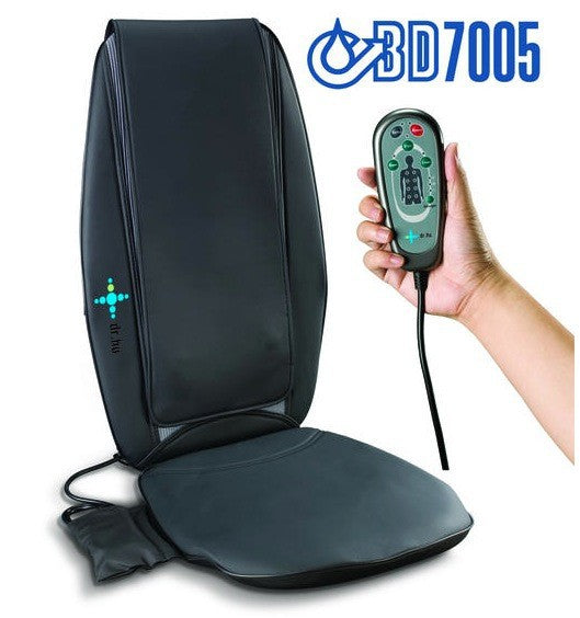 Scaun de masaj Shiatsu - model BD7005, acest dispozitiv executa un masaj de relaxare a musculaturii spatelui, se poate adapta pe orice tip de scaun cu bretelele elastice trecute dupa spatarul acestuia. Scaunul de masaj Shiatsu BD7005 are 6 capete de masaj care se deplaseaza sus - jos in lungul coloanei vertebrale.