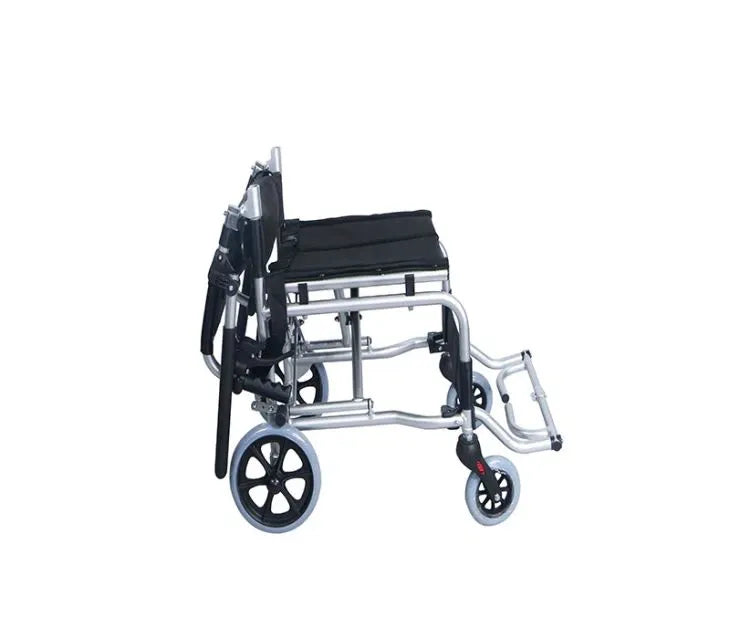 Acest scaun cu rotile mic și compact este fabricat din aliaj de aluminiu ușor, cu o capacitate portantă de 100 kg. Acest scaun cu rotile manual de călătorie poate fi pliat rapid în dimensiunea unei valize, fiind portabil și economisind spațiu. Scaunul cu rotile ultraușor de transport are un unghi reglabil al spătarului, cotiere și suporturi pentru picioare rabatabile și este echipat cu o centură de siguranță pentru a asigura o deplasare sigură. Scaunul cu rotile mic și compact este prevăzut cu roți din PU extrem de elastice, care absorb șocurile și rămân silențioase, adaptându-se la diverse suprafețe de drum. Perna scaunului cu rotile ultraușor de transport este ușor de curățat, ceea ce face ca utilizarea acestui scaun cu rotile manual de călătorie să fie mai confortabilă și fără griji. Acest scaun cu rotile manual de călătorie poate fi utilizat într-o varietate de scenarii.