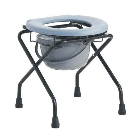 Scaun WC de camera - model simplu dar eficient, ajuta pacientii cu mobilitate redusa ce nu se pot deplasa la un WC normal. Corpul WC de camera realizat din otel vopsit in pulberi epoxy impotriva coroziunii, Picioarele comodei WC au tampoane de cauciuc pentru o aderenta sporita si protectia pardoselii.