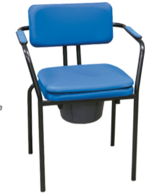 Scaun cu WC inclus, WC de camera, produs destinat celor care nu se pot deplasa, pentru rezolvarea necesitatilor fiziologice in camera. Structura de rezistenta a scaunului WC de camera este realizata din otel vopsit in pulberi epoxy, tapiteria din piele sintetica.